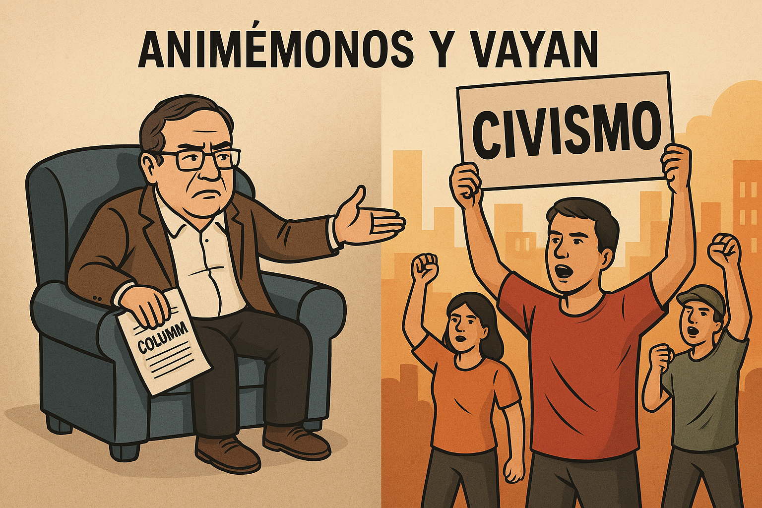 «Animémonos y vayan» era una frase común que usábamos en familia para referirnos y burlarnos de aquellos casos en los que alguien proponía algo, pero para que los demás lo hicieran. Hay algunos seres humanos que son bien caraduras y creen que pueden ir pontificando desde la comodidad de sus sillas sobre lo que otros deben hacer y se olvidan de lo que les corresponde. Dos columnas de opinión esta semana han circulado por las redes sociales, una del exalcalde Álvaro Ramírez y otra del dirigente Juan Nicolás Gaviria, en la que se vienen lanza en ristre contra las organizaciones y colectivos cívicos que se han venido conformando en la ciudad y que tienen como objetivos principales promover el civismo, la cultura ciudadana y la pereiranidad. Ambos personajes manifiestan que sobre el tema de la avenida de los colibríes y las actuaciones judiciales recientes relacionadas con los hechos de corrupción que la envuelven, todas estas organizaciones «se rasgan las vestiduras desde el sofá, emiten comunicados indignados y escriben columnas inflamadas, pero no mueven un solo dedo para constituirse como víctimas, para exigir como veedurías …». Que dichos colectivos debemos «pasar de las definiciones a la acción sin más documentos teóricos, ni más diagnósticos trasnochados». Y que «debemos aterrizar y untarnos de Pereira».