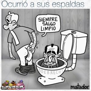 Un segundo aspecto de la corrupción es la capacidad de direccionar dineros hacía contratistas específicos, a dedo, caso de la UNGRD; otro caso es el de Odebrecht, que causó hasta el suicidio de Alan García en el Perú y, que aquí las autoridades judiciales venales han tapado y engavetado para favorecer a los implicados con padrinos poderosos como es el caso de Oscar Iván Zuluaga “el muñeco de Uribe” (ver caricaturas anexas).