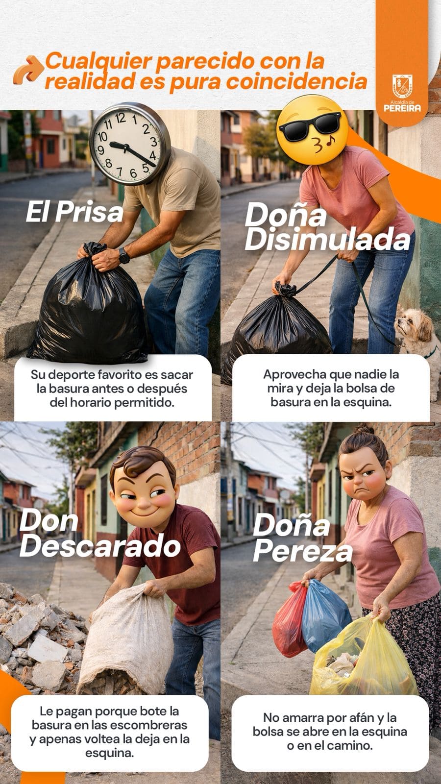 - Excelente campaña de sensibilización que adelanta la Alcaldía de Pereira, la foto que acompaña este artículo así lo demuestra.