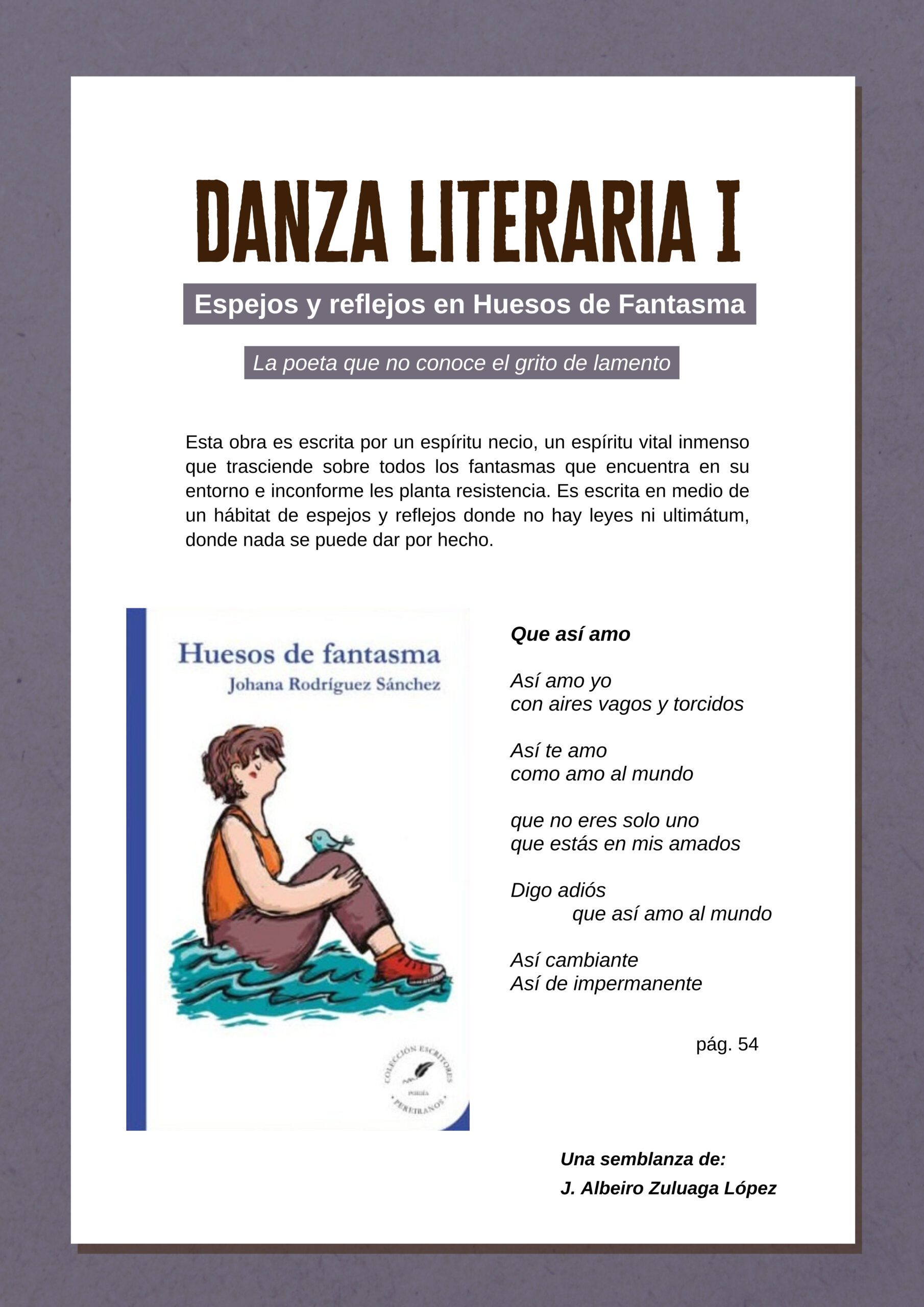 De huesos y de fantasmas, la de Johana Rodríguez Sánchez, pues, es una obra de espejos y reflejos, de mutismos sonoros, de potentes figuras compositivas que no hay que dejar de leer en los momentos de aflicción. Es una de esas obras que martillan la angustia cuando se hace bola de hierro y se incrusta dura en el abdomen desprotegido.