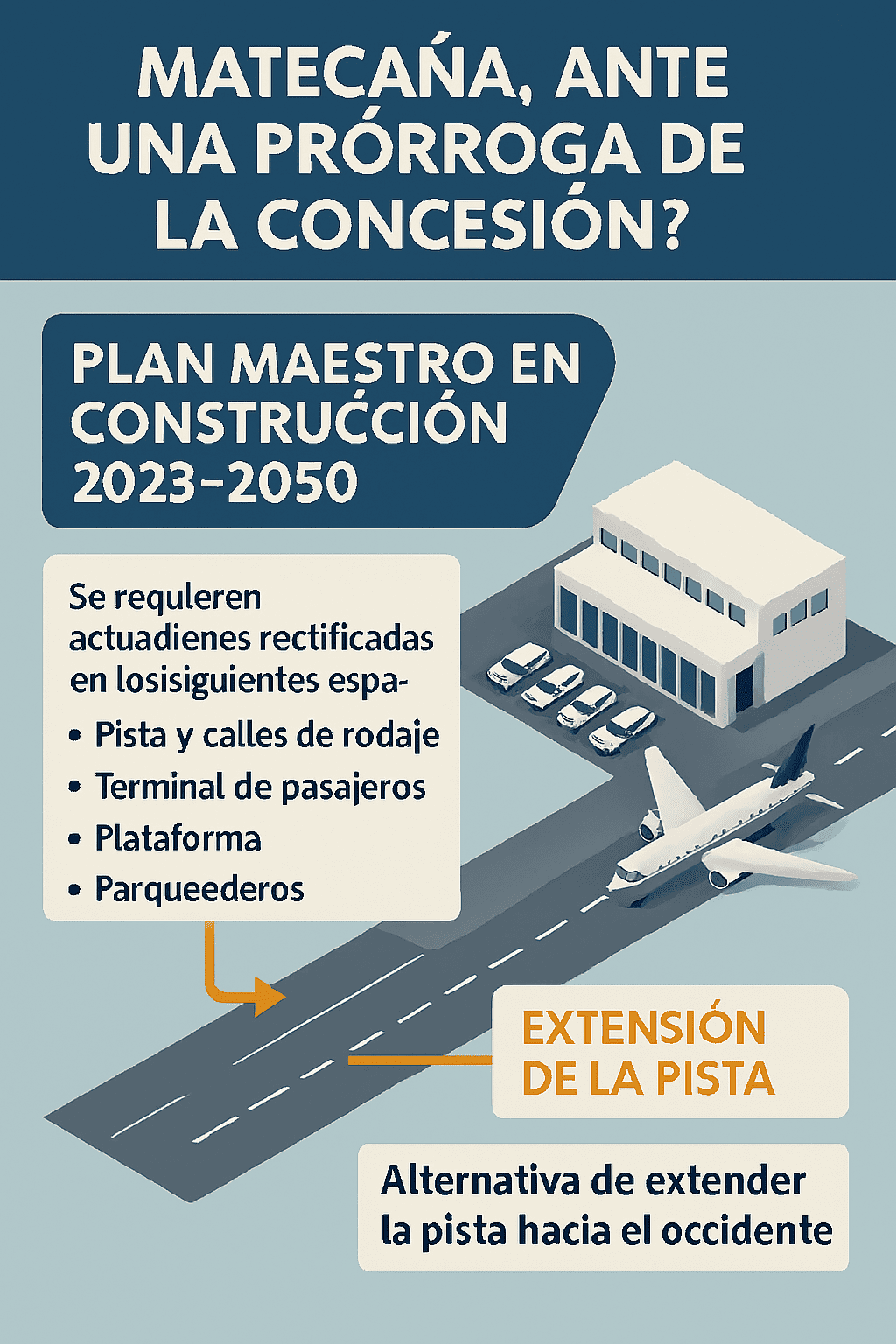Con estas cortas líneas se deja de lado el grave problema de la extensión de la pista, repitiendo lo ocurrido en 2018, con la primera revisión del Plan Maestro bajo la concesión de OPAM. Ese documento señala: «(…)