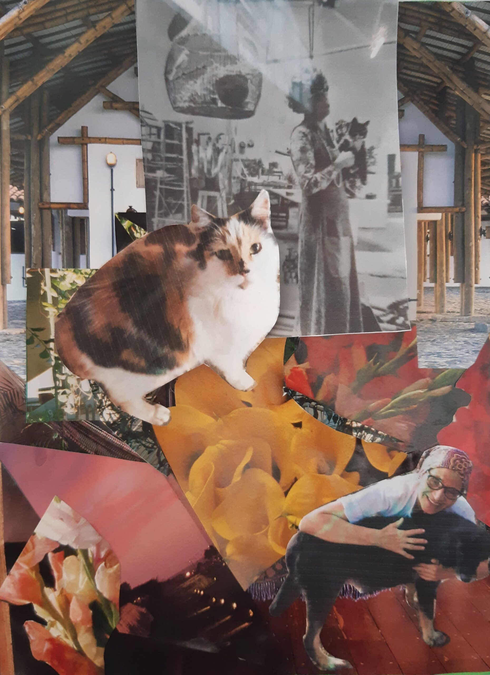 Una amiga entrañable, me envío un enlace, que también debí posponer. Hago mi vida, “la vida que se encoge o se expande en proporción al coraje que se tenga” (Anais Nin). El esplendor del amanecer me sorprende con una montaña que al mezclarse con la distancia, la neblina, el horizonte del cielo parece un insondable valle. La danza de la cotidianidad: fregar los platos, cocinar, tender la cama, ir al mercado, inventar una receta, dictar clases, caminar, cuidar de mi perra vieja y enferma, hacer ejercicio, hablar por teléfono. ¡Exaltar la creatividad¡ Las manos en la tierra, las manos para recoger flores, las manos en el agua, manos para acariciar, manos para sanar. La lluvia, el sol, el viento, el silencio, la música, un grito allí, una lagartija, un ladrido, una mariposa. La contemplación. De lejos alguien hurga la tierra. Juego a pintar rostros, hago un collage, involucro la foto, al igual que la de una gatica desterritorializada, que irrumpe misteriosamente en mi vida.