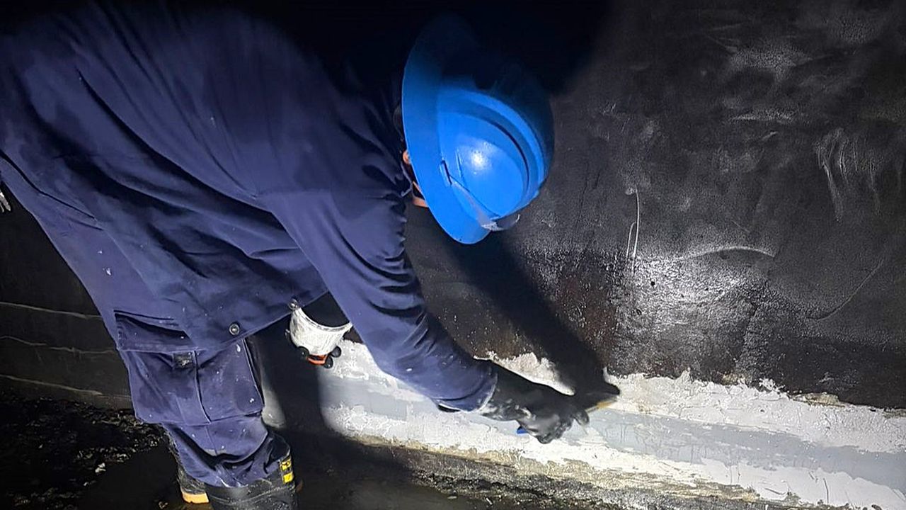 Estas intervenciones corresponden al proceso de sellado de juntas constructivas, una labor que debe desarrollarse por etapas debido a la extensión de la superficie que requiere intervención. El objetivo es garantizar la impermeabilidad y estanqueidad del tanque mediante la instalación y ajuste de sellos sintéticos, fortaleciendo así las condiciones de almacenamiento del agua potable y la eficiencia del sistema.