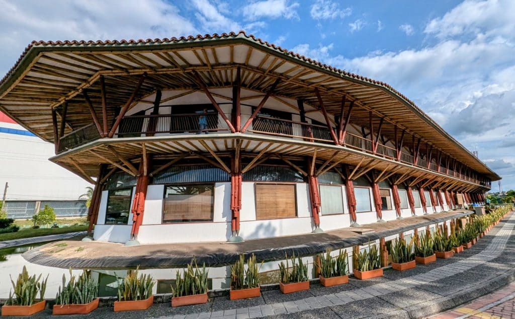 Se puede decir que fue esta entidad, encargada de administrar los recursos naturales, la que comenzó a “colonizar” esta zona de la ciudad con una gran edificación construida en guadua, que hay que reconocer, se ganó muchos elogios, porque su constructor fue Simón Vélez, un arquitecto famoso por su innovador uso de la guadua como elemento estructural en las construcciones de la región. Además de grande, la construcción era en guadua, dos motivos para destacarse en el lugar.