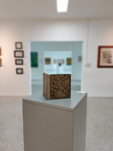 La mesa y las sillas vacías amplifican la interpretación social: espacios para el diálogo, para el encuentro, para los cuerpos que transitan, pero no siempre permanecen. Son metáforas del ausente, del espectador potencial, del estudiante o ciudadano que está llamado a ocupar su lugar en una reflexión colectiva. La obra tridimensional que simula un paisaje mitológico casi egipcio o griego, con su círculo dorado solar se sitúa como un diálogo universal, recordando que la creación local no es periférica, sino parte del mapa global del arte contemporáneo.