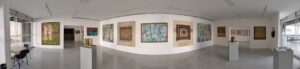La exposición Trayectos, presentada en la Facultad de Bellas Artes y Humanidades de la Universidad Tecnológica de Pereira – UTP, se inscribe en un contexto sociocultural que trasciende la simple exhibición estética. Su instalación en un edificio cuya propia historia ha estado marcada por desplazamientos que convierte este espacio en un símbolo de resistencia, reconstrucción y persistencia cultural. Así, el recorrido por los pasillos grises no solo enmarca la obra, sino que la sitúa en un entramado donde la memoria institucional dialoga con la memoria creativa del maestro Hoyos.