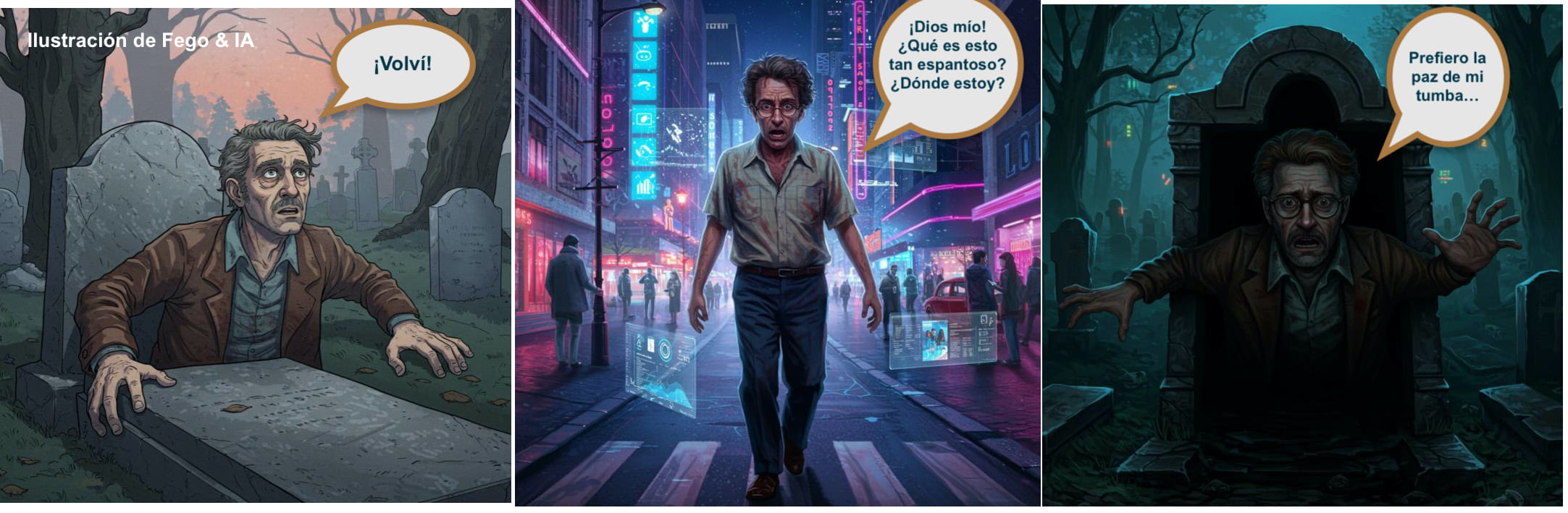 Es muy probable que nuestro resucitado, ante tal vorágine de cambios, ante la magnitud de un salto evolutivo condensado en unas pocas décadas, se sintiera tan profundamente desorientado, tan ajeno a este nuevo orden, que la paz de su descanso eterno le pareciera una opción infinitamente más acogedora. Quizás, solo quizás, preferiría volver a su tumba, anhelando la predecible sencillez del mundo que dejó atrás.